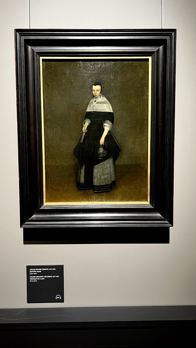 «Портрет дамы» Герарда Терборха — шедевр, который, кажется, намерено создан, чтобы его обсуждали с бокалом вина и высокомерным выражением лица 😅 Точно как у дамы на картине. Хотя наши впечатления вполне могут и отличаться. Дама на портрете смотрит на нас, зрителей, с немым вызовом: «я знаю, что вы думаете, но сейчас никому не скажу». И этим сразу становится ближе, ведь теперь у вас есть общая тайна 🙌🏻 Да, Терборх умел не только блестящие изображать шелка, но и передавать характер своих героев. Сегодня эту картину можно увидеть в коллекции ГМИИ им. А.С. Пушкина. Лично я могу бесконечно рассматривать очаровательную сумочку в руках дамы (если это можно назвать сумочкой), веер, кулон, серьги и кольца, прозрачность манжет и завязочки (не знаю даже как называется это предмет одежды, похожий на воротник). А вот к чему в её образе красная лента, завязанная в небольшой бант ещё предстоит угадать 🤔 Хотя, если предположить, что у вас все же появилась одна тайна на двоих, Дама становится ско