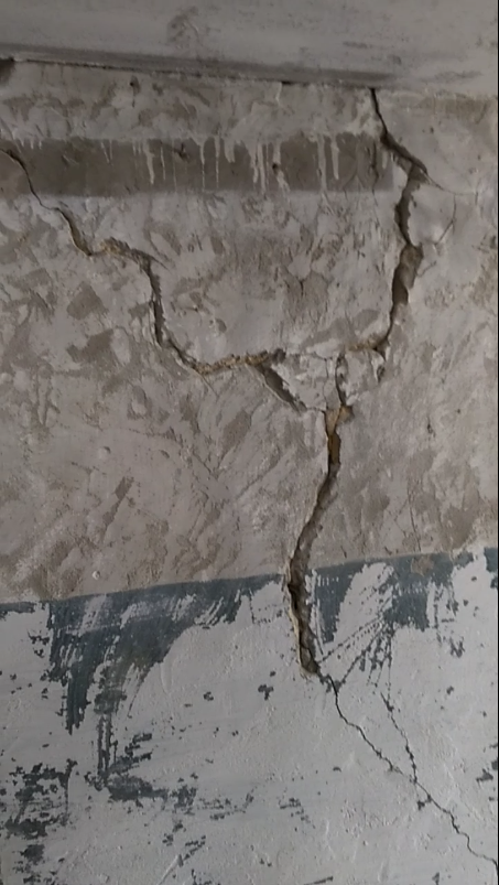 - Кривые стены с огромными трещинами и весьма неровной штукатуркой.