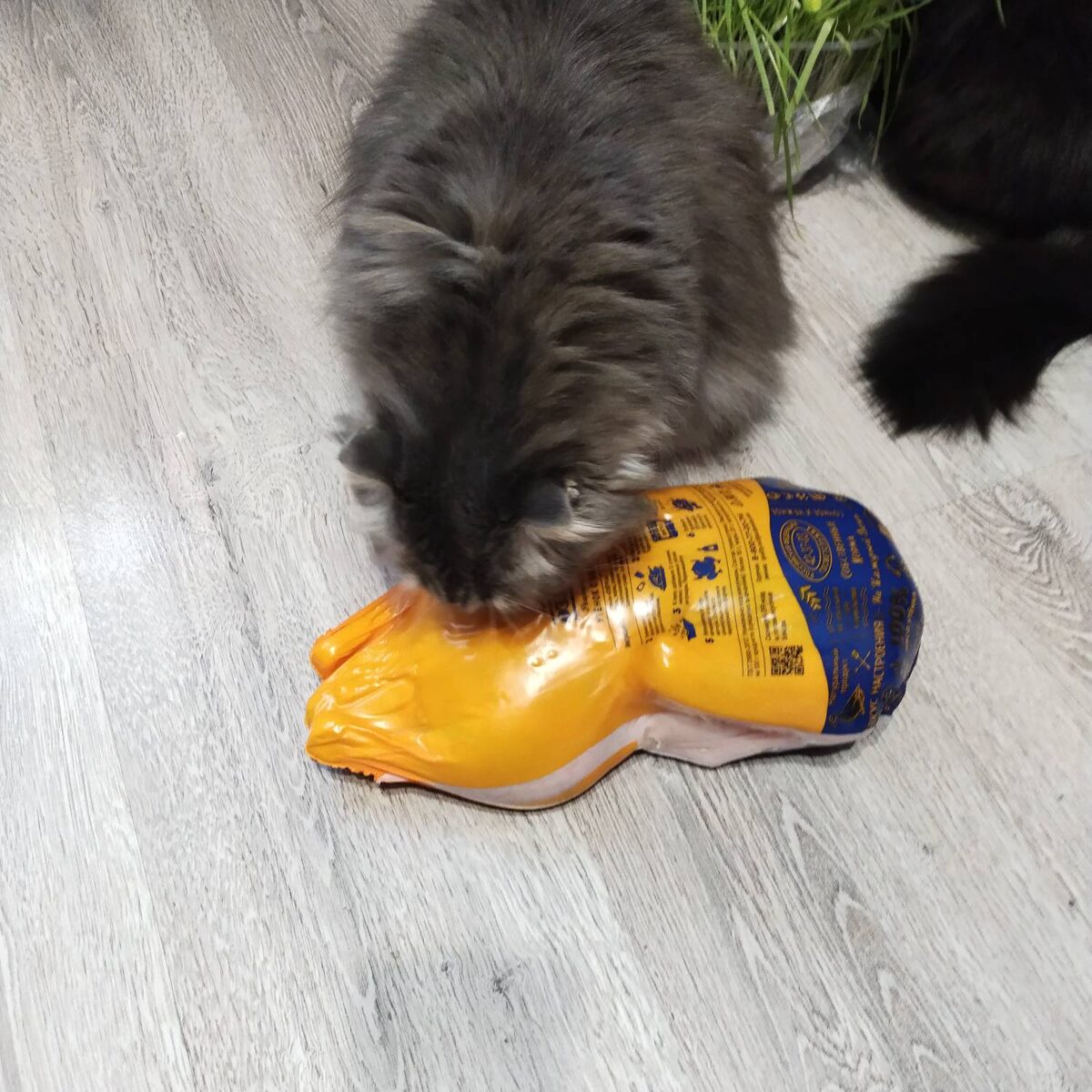 - Омно-мно-мно. Что за пакетовая? Пахнет вкусно? - Баня обнаружила на кухне пакет с уткой, которую мы сегодня принесли с Сашкой из магазина.