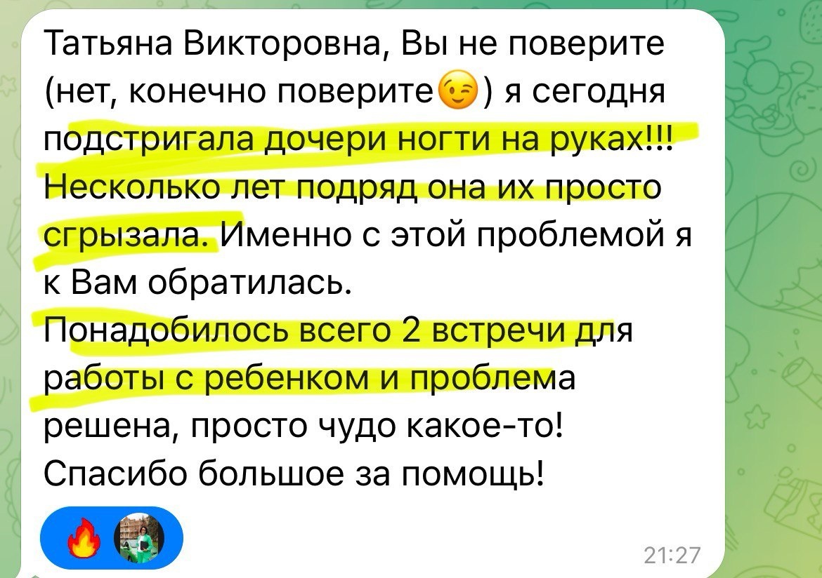 Как думают родители? - «Это вредная привычка, нужно ее убирать» - «Это у него от скуки, нужно его чем-то занять» - «Ему что, это вкусно??? Нужно бить по рукам, намазывать их перцем…» А что происходит с ребенком на самом деле, когда он грызет ногти? Ребенок грызет ногти, когда сильно нервничает. Когда он подавляет свои эмоции. Когда ему тревожно. О них. - Перед контрольной в школе - Перед соревнованиями - Когда постоянно ругают родители -Когда стесняется в классе - Когда не уверен в себе и думает, что «у меня ничего не получится», «я какой-то не такой», «я неловкий» и т.д. Если не помочь ребенку разобраться со своими эмоциями и научиться говорить о том, что он чувствует, то в будущем это вырастет в «махровый» НЕВРОЗ. А это: - постоянная неуверенность в себе - сложность в построении отношений - вечная нелюбимая работа за копейки - тревожность обо всем И, как следствие всего этого- психосоматические заболевания. Поэтому погрызенные ногти- это не просто про некрасивые руки. Все намного се