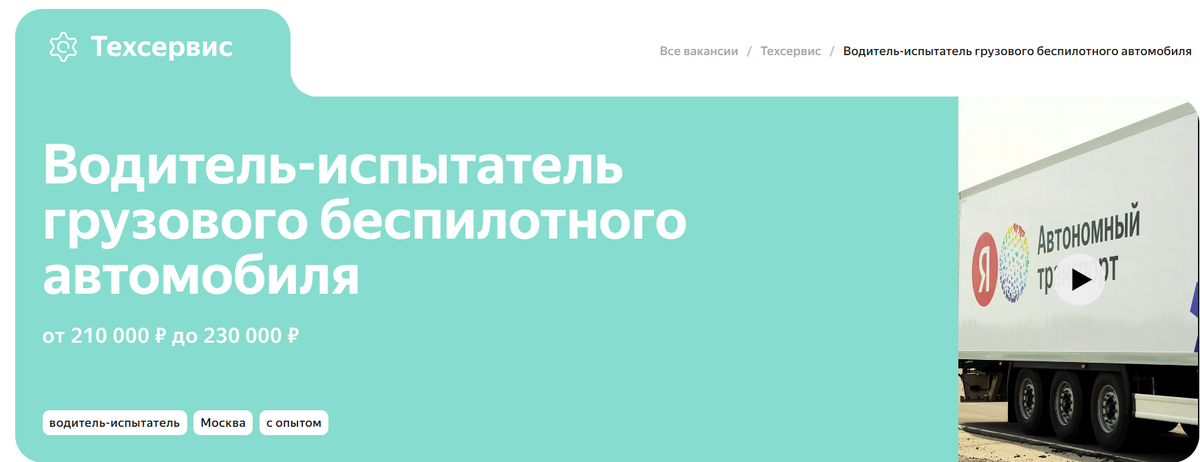 Друзья, обычные водители начнут тренировки искусственного интеллекта в условно беспилотных машинах. Задача новобранцев проста - следить за тем, чтобы не произошло ДТП. Ценник за такую работу неплох - 200 000 рублей в месяц. В довесок компенсация питания и ДМС. Но так ли все хорошо и что за этим стоит для отрасли перевозок? Давайте разбираться. Поехали! Итак, компания «Яндекс» озвучила требования к кандидатам. Официально вакансии называется “водитель-оператор для беспилотных грузовиков”. Каковы же условия работы? Смотрим: Место работы - деревня Михнево (Московская область). Что предстоит делать оператору: Мы решили обсудить с экспертами условия вакансии. Глава Национальной ассоциации «Грузавтотранс» Владимир Матягин отметил, что в части дохода предложение от айти-гиганта находится в тренде рынка. То есть ничего выдающегося «Яндекс» не предлагает. Однако есть нюанс - за беспилотными системами будущее. И желающим оказаться в числе первых в этой технологическом поезде рекомендуем рассмотр