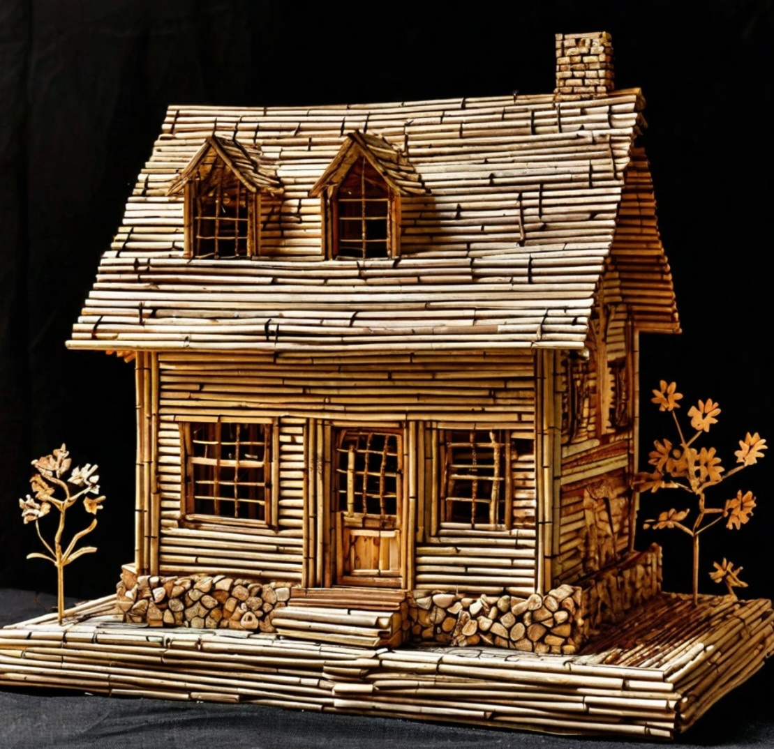 Соломенный домик стоит в серванте бабушки рядом с маленькой иконкой, все что осталось от матери отца из прошлой жизни.
