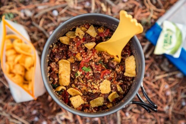 Упакуйте боул с киноа и буррито в большие или маленькие порции в зависимости от вашего аппетита! Для получения дополнительной информации о том, сколько еды есть во время рюкзачного туризма, ознакомьтесь с нашим постом о еде для рюкзачного туризма.