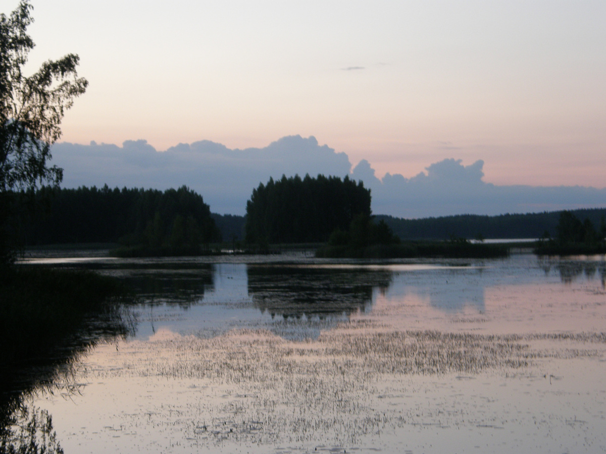 Вечером мы отправлялись опять на рыбалку. Я на своё прикормленное место. По пути снова прикармливала облюбованное место и причаливала к острову. Определенное время уходило на то, чтобы привязаться к веткам обеими концами лодки, так как очень сильный ветер требовал определенной стабильности лодки. С погодой в этот раз нам не повезло. Конец июня выдался дождливым и очень ветреным, причем северные и северо-западные ветры всегда холодные и пригоняют осадки. Дожди случались почти каждый день, а пронзительный ветер на воде доставлял массу неудобств. Тем не менее, после зимних месяцев в шумном городе нас всё устраивало.