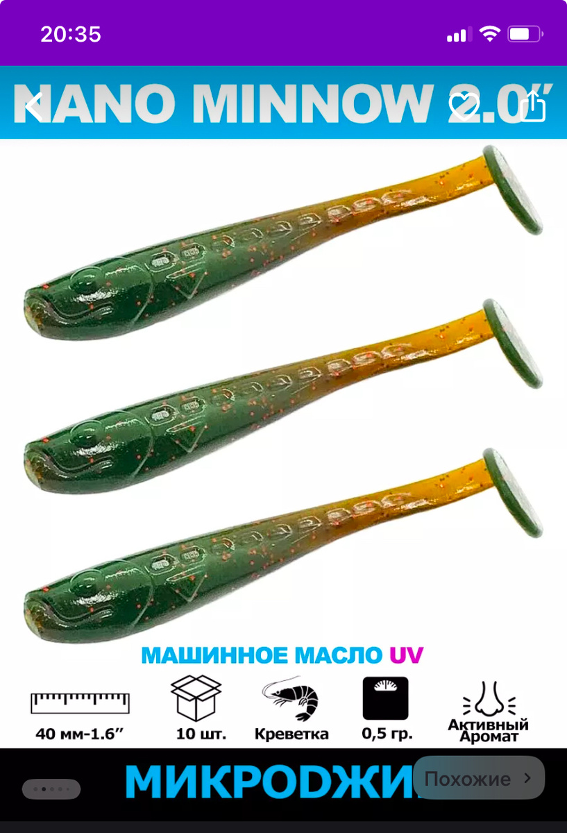 В микроджиге используется множество приманок, в основном это силиконовые приманки разных видов и типов. Условно их можно разделить на две группы: Здесь представлены те приманки которые используя я, именно те цвета которые по моему мнению работают в любою погоду, в любом водоеме. С расцветками можно и нужно экспериментировать так в разные времена года, водоемы по прозрачности воды разные. Так весной вода очень мутная, из-за того что начинает цвести, водоросли начинают прорастать со дна и поднимают грязь. Вот в это время очень хорошо работают приманки с ярким цветом. Осенью же все на оборот. Приманки стоит использовать более темные, естественных расцветок. Я думаю не для никого это не секрет, то о чем я написал, но для начинающих рыболовов кто только собирается пробовать себя в этом виде ловли будет полезно. И для всех нас желаю больших трофеев и летной погоды, но как говорится у природы нет плохой погоды. Всем спасибо. НХНЧ дорогие товарищи!!!