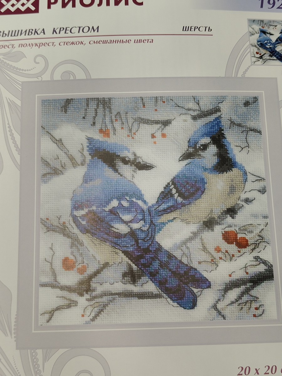 Голова все не проходит, но уже попроще, чем вчера. Покажу вам вышивку, которую хотела начать этой зимой. Классные такие сойки.