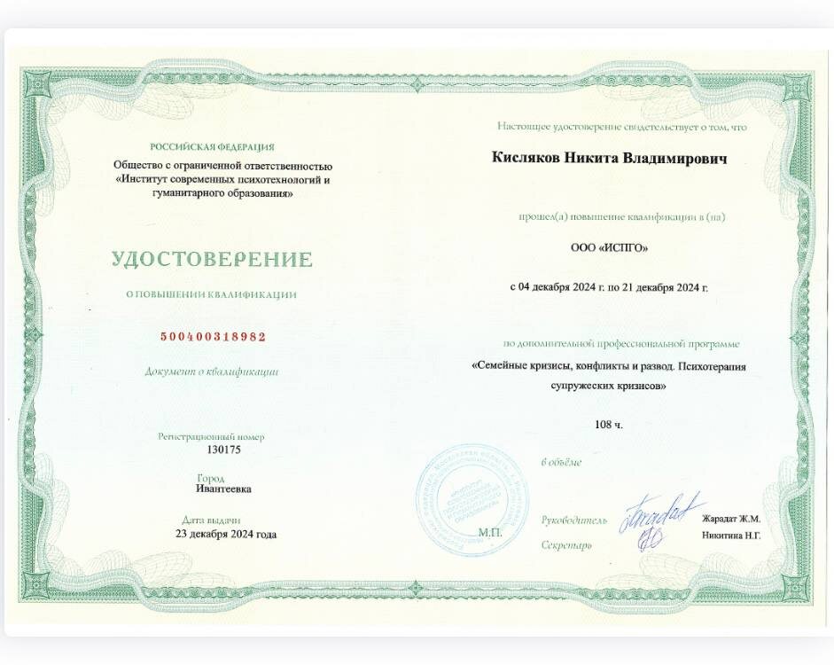 «Семейные кризисы, конфликты и развод. Психотерапия супружеских кризисов» «Основы гештальт-терапии с практикой применения в образовательном процессе» «Самопомощь и психологическое благополучие: развитие навыков саморегуляции и эффективное управление стрессом» «Основы коучинга как инструмент саморазвития»