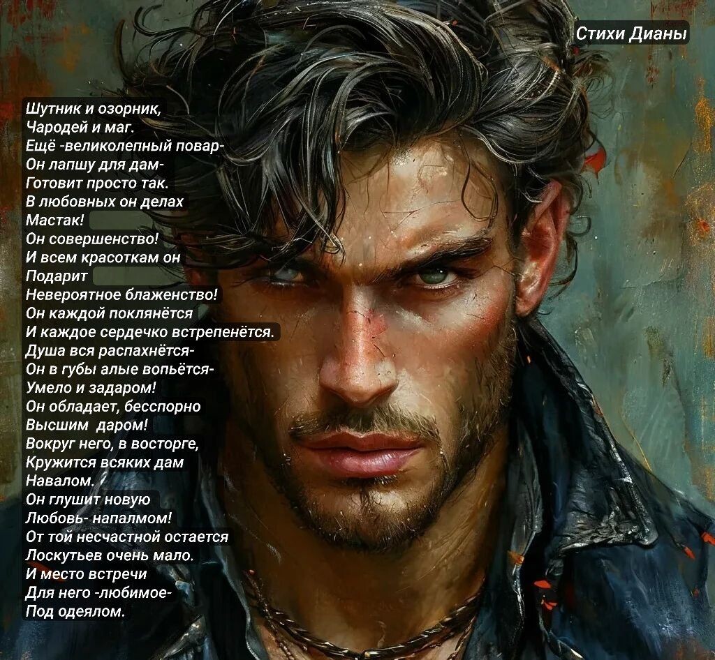 Пост шутошный.😏 Посвящен всем Ловеласам. Наши мальчики подтолкнули к написанию.😊 Потому как, кроме Донжуанов других не держим. Нам очень нужны ценители нашей красоты, обаяния и ума. А за это мы их тоже любим всей душой. Мы секретные (подпольные) Донжуанки и Ловеласки, но думаю, они где -то далеко об этом догадываются и подозревают. 🤭 Шутник и озорник, Чародей и маг. Ещё -великолепный повар- Он лапшу для дам- Готовит просто так. В любовных он делах Мастак! Он совершенство! И всем красоткам он Подарит Невероятное блаженство! Он каждой поклянётся И каждое сердечко встрепенётся. Душа вся распахнётся- Он в губы алые вопьётся- Умело и задаром! Он обладает, бесспорно Высшим даром! Вокруг него, в восторге, Кружится всяких дам Навалом. Он глушит новую Любовь- напалмом! От той несчастной остается Лоскутьев очень мало. И место встречи Для него -любимое- Под одеялом. Вот этот мужской типаж мой самый любимый. Я его назвала -Темный яд.👹 Вот этого я назвала Зефирчик.Он такой сладкий , до при