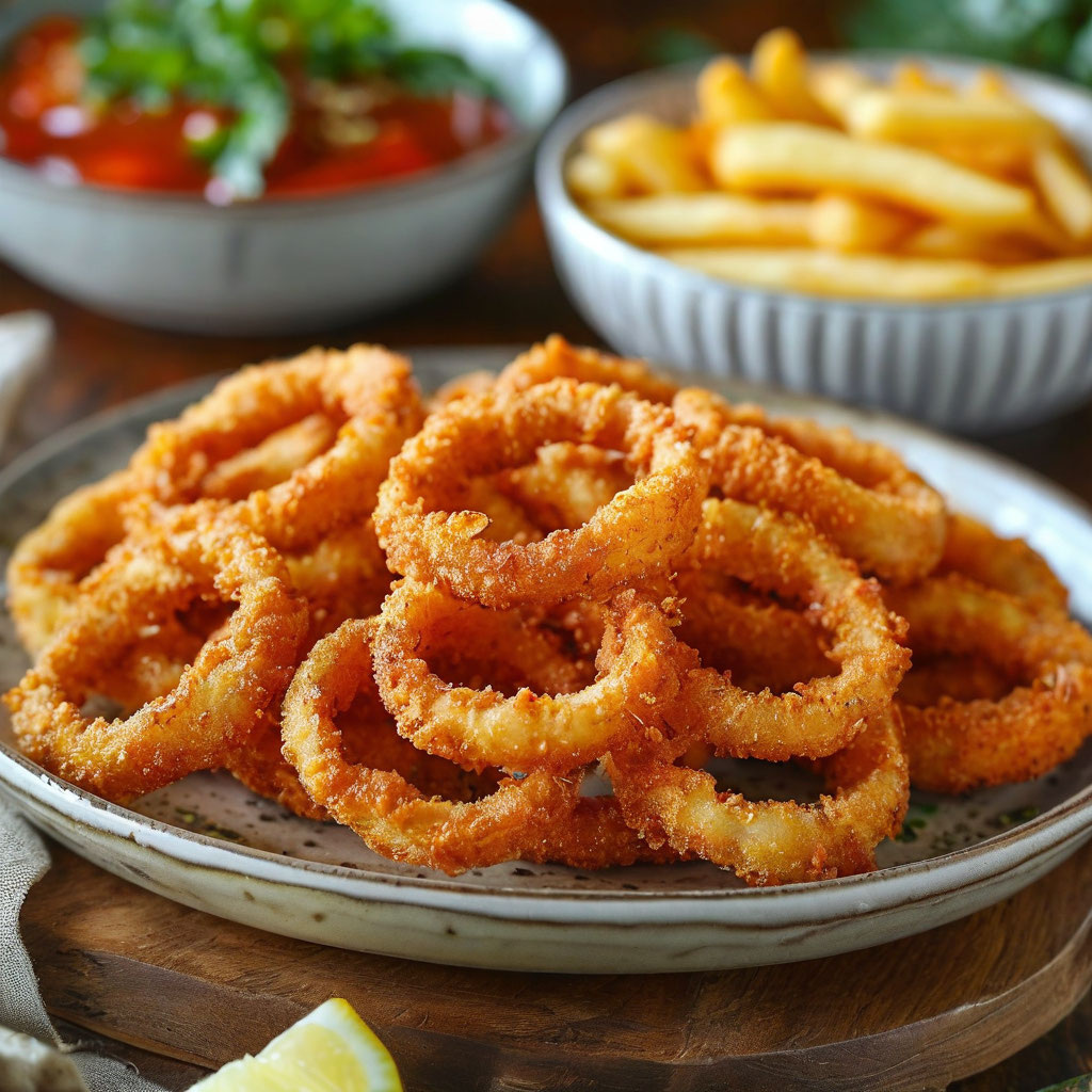 Подавайте луковые кольца горячими. Отлично сочетаются со сметано-чесночным или кисло-сладким соусом.