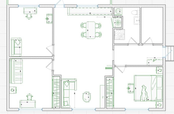 Тут часто выкладывают планировки своих домой и дают ценные советы. Хочу и я показать свой, он пока только на бумаге. Товарищи пикабушники покритикуйте пожалуйста планировку, а может, посоветуете чего. Значит, планируем строить дом для семьи 3 человека (плюс гости), жить там постоянно не собираемся, это дача на лето-осень, то есть мы будем переезжать туда на все лето, приезжать на праздники и каникулы, благо работаю на удалёнке Дом будет каркасный, 8х12 м + терраса, выход на террасу из кухни-гостинной. Для хранения всякого барахла будет сарай рядом с домом и чердак, поэтому отдельно кладовку не делаю. Комнаты такие: кухня-гостинная 32 кв.м, спальня, детская, кабинет по 12-13 м, с/у, тех.помещение для бойлера, отопление электричество+ печка. Пост автора SpainPolice. Читать комментарии на Пикабу.
