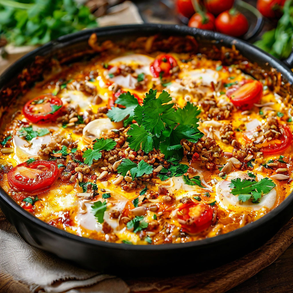 Подавайте блюдо горячим прямо в сковороде.