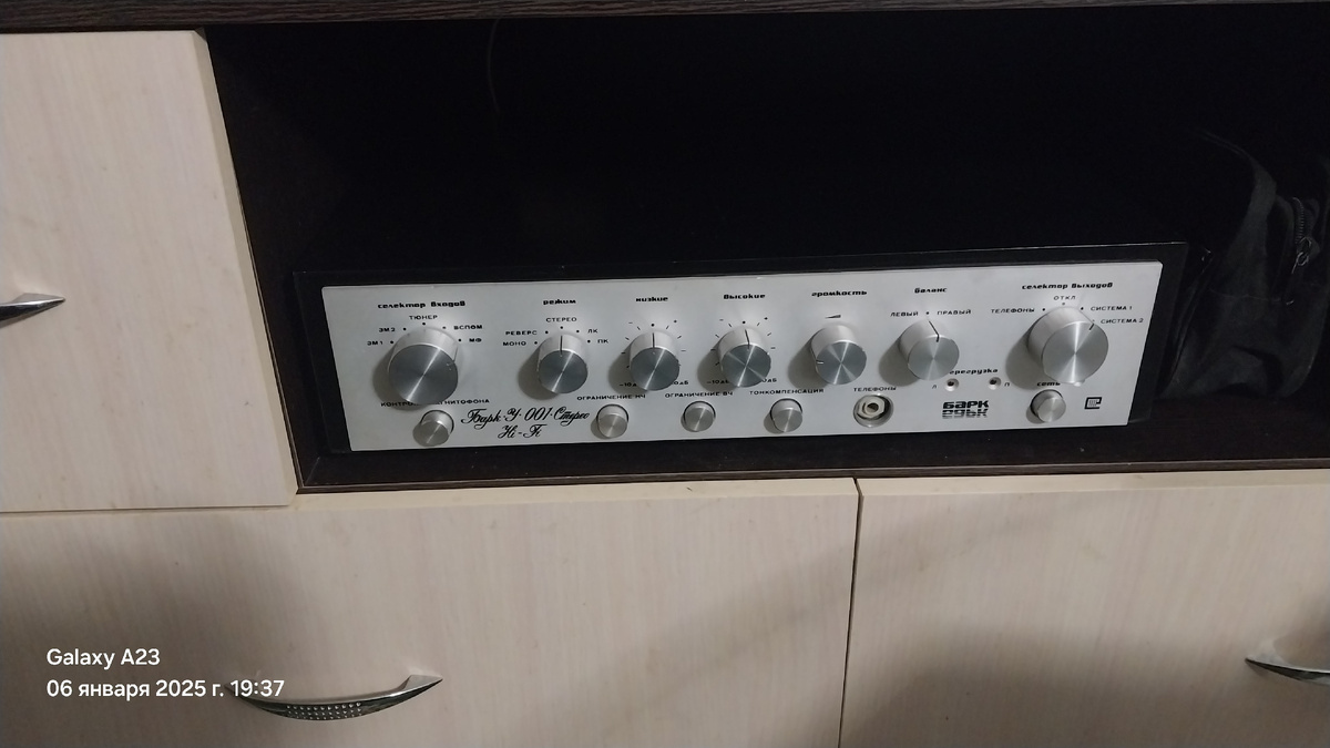 Приобрел усилитель Барк [Бриг], Посаветовал покупатель которому я продал хороший усилитель RADIOTEHNIKA U 7112. Покупкой я доволен не зря преобрел Звучит на ура второй раз повезло с покупкой, в первый раз с RADIOTEHNIKA S 50B. Все крутилки на месте подключение интересное не точка-тире, ни зажимы, а как на фото. Розетка для подключения других устройств если мало розеток.
