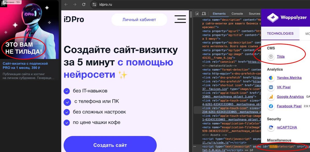 Это вам не Тильда, это TILDA! Попалась мне реклама, с ярким заголовком “Это вам не Тильда”. На самом сайте предлагают сервис для создания сайта через Нейросеть. Смешно, что сам промо-сайт сделан на Тильде, а не на их чудо конструкторе… Проверяйте, что внутри обертки :) Переходи в мой телеграм-канал, там меньше цензуры :)