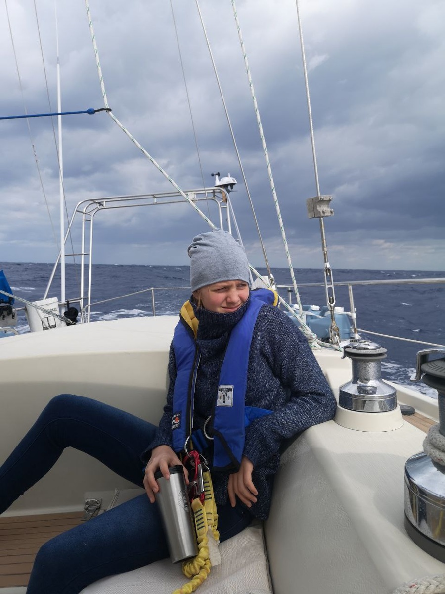 Морская болезнь нас всё же настигла, но в достаточно упрощённом виде. Голова побаливала, и чувствовалась тяжесть. На любое действие, особенно внутри лодки:будь то пройтись в туалет, переодеть Кузьму, приготовить еду, открыть трюм и вытереть там воду; тратилось много сил и энергии. Организм хотел только лежать, а лучше всего спать. Есть тоже не хотелось, особенно в первый день. Еда с трудом проглатывалась, и неприятно ощущался весь её долгий путь по пищеводу. Но Лёша следил, чтобы все мы ели хоть немного, потому что для облегчения проявлений укачивания нужно было не допускать голода, обезвоживания и охлаждения. Лучше всех прикачивались Ваня и Кузьма, поэтому старший сын с любовью заботился о нас: делал нам вкусный чай, бегал вниз за печеньками и сухофруктами или по другим поручениям капитана, пока мы отсиживались на свежем воздухе в кокпите. Хуже всех было Маше. Она часто спала или лежала.