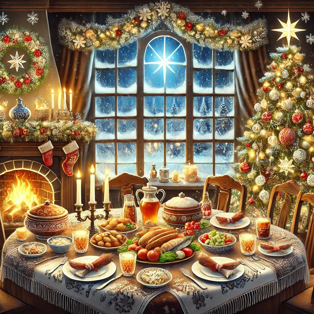 Рождество Христово, отмечаемое в России 7 января, — это особенный день, который объединяет духовные традиции, семейные ценности и атмосферу волшебства. 🎄 Несмотря на современные реалии, многие обычаи праздника бережно сохраняются и передаются из поколения в поколение. Рождество пришло на Русь вместе с крещением в 10 веке. В это время праздник стал важной частью культуры, символизируя рождение новой жизни и света. Однако в советские годы празднование было практически запрещено, и только в 1991 году Рождество снова стало официальным праздником. Сегодня его отмечают миллионы людей по всей стране, каждый по-своему. Рождественский период в России начинается с сорокадневного поста, который заканчивается Святым вечером 6 января. Этот день наполнен ожиданием чуда и традицией собираться всей семьёй за ужином. Главным блюдом вечера является сочиво — смесь из зёрен пшеницы или риса, мёда и фруктов, символизирующая единство и гармонию. 🍯 Посещение храма. Рождественская ночь знаменуется торж