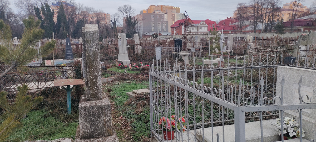 И я все таки ступила за ворота. Здесь был глобальный ремонт. Фотографий будет мало, потому что я реально офигела. Да и зашла я из за любопытства ,а не для того, чтобы статью написать. Но пока дошла до выхода, у меня мозг кипел. Господи! Как ты допустил это? Хотя в каждом городе есть такой ужас. У нас в Иркутске Лисихинское кладбище ещё хуже. Но его тоже не хотят убрать из почти центра города. А туда перезахоронили декабристов, некоторых купцов меценатов,героев исторических событий. Только как их найти в таком бардаке? Но на Лисихинском я была летом. Хоть трава и зелёные деревья скрашивали убогую картину. А сейчас был пасмурный день, и даже зелёные ёлки казались черными. Но я уже шла навстречу интересному. То, что я увидела, было удивительно. Кучи вывороченной земли. Наверное убрали то, что было, и вот эти плиты в упаковках лягут на место старых. А что же это такое здесь было? Я оглянулась сразу поняла, что это военное захоронение. Наверное здесь хоронили тех, кто освобождал Краснодар