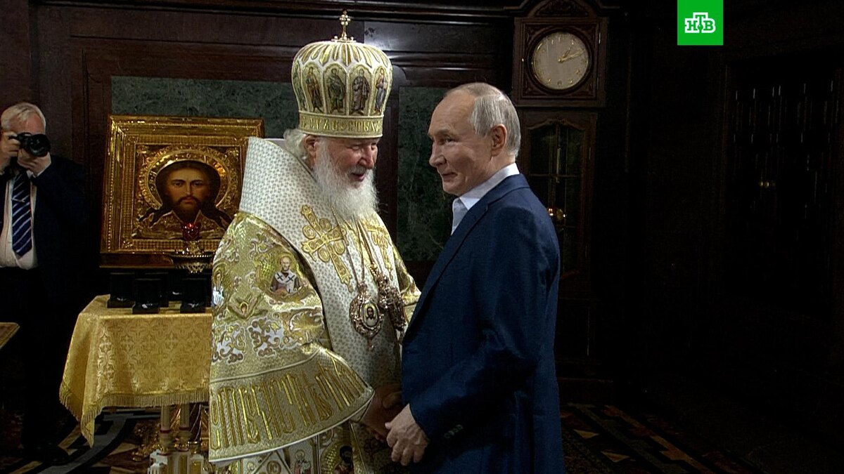 В храме Путин поздравил патриарха Московского и всея Руси Кирилла.