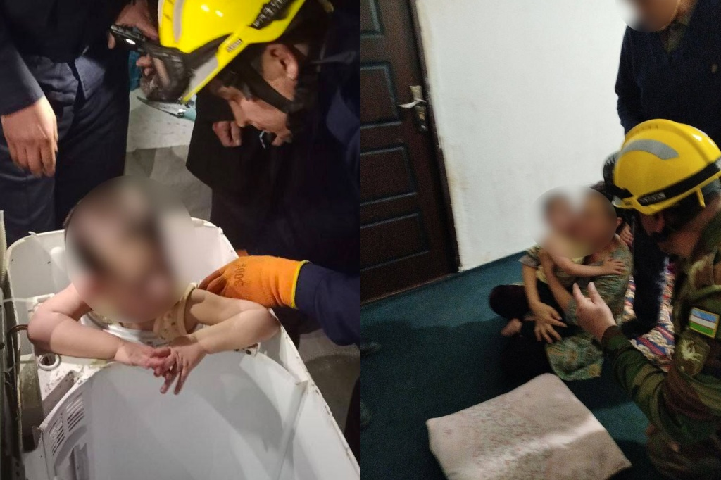 В Джизакской области спасатели освободили ребенка, застрявшего в стиральной машине