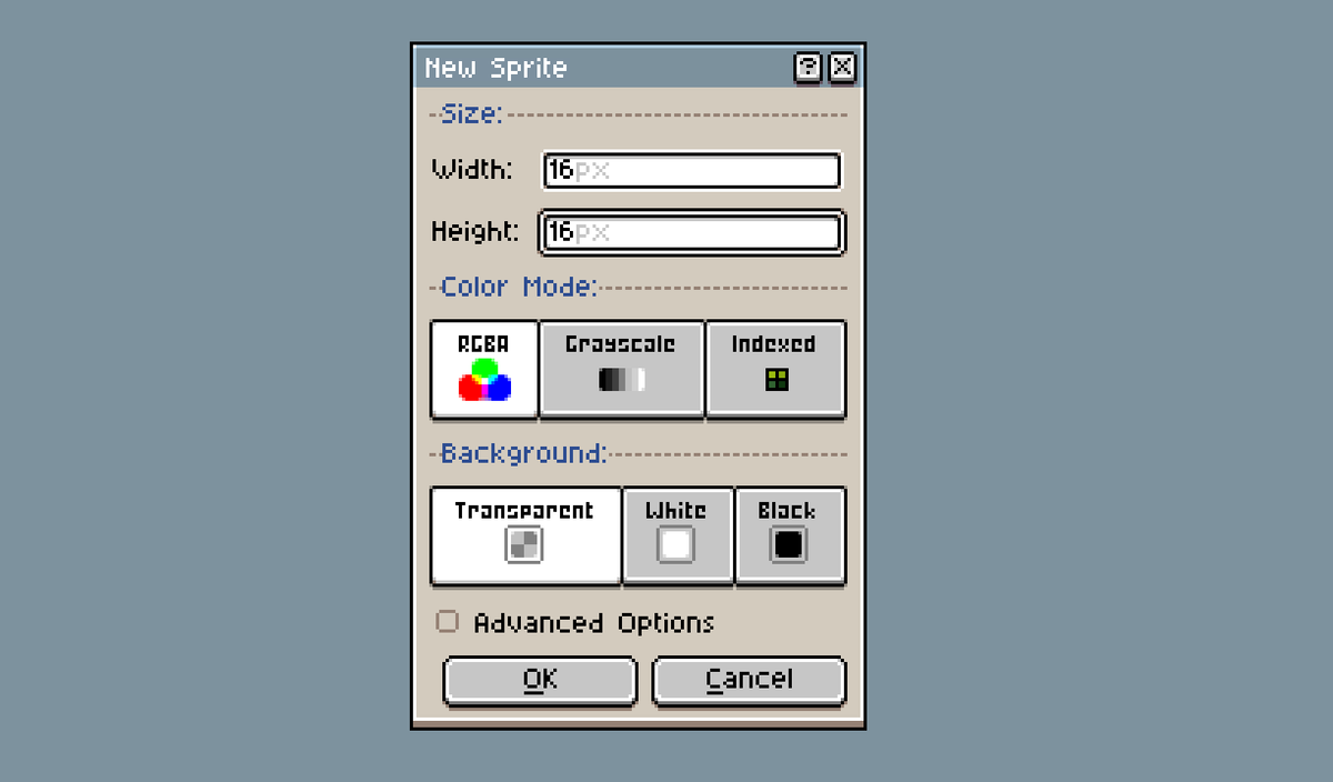 Начинаю писать статьи. Это будет что-то вроде заметок. Основная тема это рисование пиксель арта и может какие-то технические подробности. Начну с самого начала и потихоньку будем вместе продвигаться к вершинам пиксельного мастерства😉 В качестве программы я использую Aseprite, хотя можно рисовать почти в любом графическом редакторе. Начнём пожалуй с чего-нибудь простого. Нарисуем меч. Размер выберем 16x16 пикселей. Думаю этого будет достаточно. Остальное можно оставить по умолчанию. Если в Aseprite нету сетки, то можно её включить в Edit -> Preferences -> Grid -> Поставить галочку Visible Pixel Grid Осталось только определиться с палитрой. В принципе можно стандартным набором обойтись, или вообще не заморачиваться по этому поводу, но всё же хочется чувствовать себя профессионалом, даже когда ничего не умеешь😁 Так что обязательно выберем палитру. Слева вверху есть значок Presets, он то нам и нужен. Нажимаем и получаем список доступных палитр из коробки. Выбрал PICO-8 (если пролистать