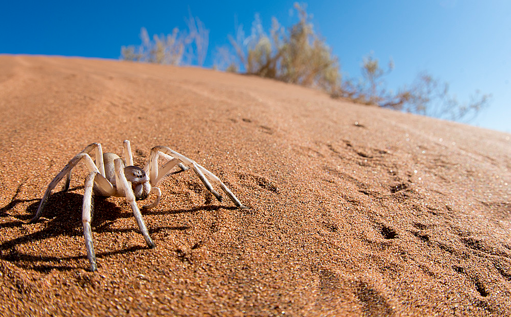 Пустыня Намиб, раскинувшаяся в Намибии, славится своей суровой красотой и экзотической фауной. Одним из её самых загадочных обитателей является паук «Белая леди» (лат. Leucorchestris arenicola), известный также как «танцующий паук». Этот представитель семейства пауков-охотников (Sparassidae) удивляет учёных своими адаптациями к жизни в экстремальных условиях и необычным поведением. «Белая леди» — это крупный паук с размахом ног более 10 сантиметров. Его кремово-белая окраска идеально сочетается с песками пустыни, позволяя пауку искусно сливаться с окружающей средой. Днём он практически никогда не появляется на поверхности. Чтобы избежать высоких температур и хищников, паук проводит дневное время в глубоких норах, вырытых в песке. Белая леди активна только ночью, когда температура в пустыне падает. Одной из самых интересных особенностей этого паука является его способность к навигации в тёмное время суток. Учёные предполагают, что он ориентируется с помощью панорамного зрения и, возможн