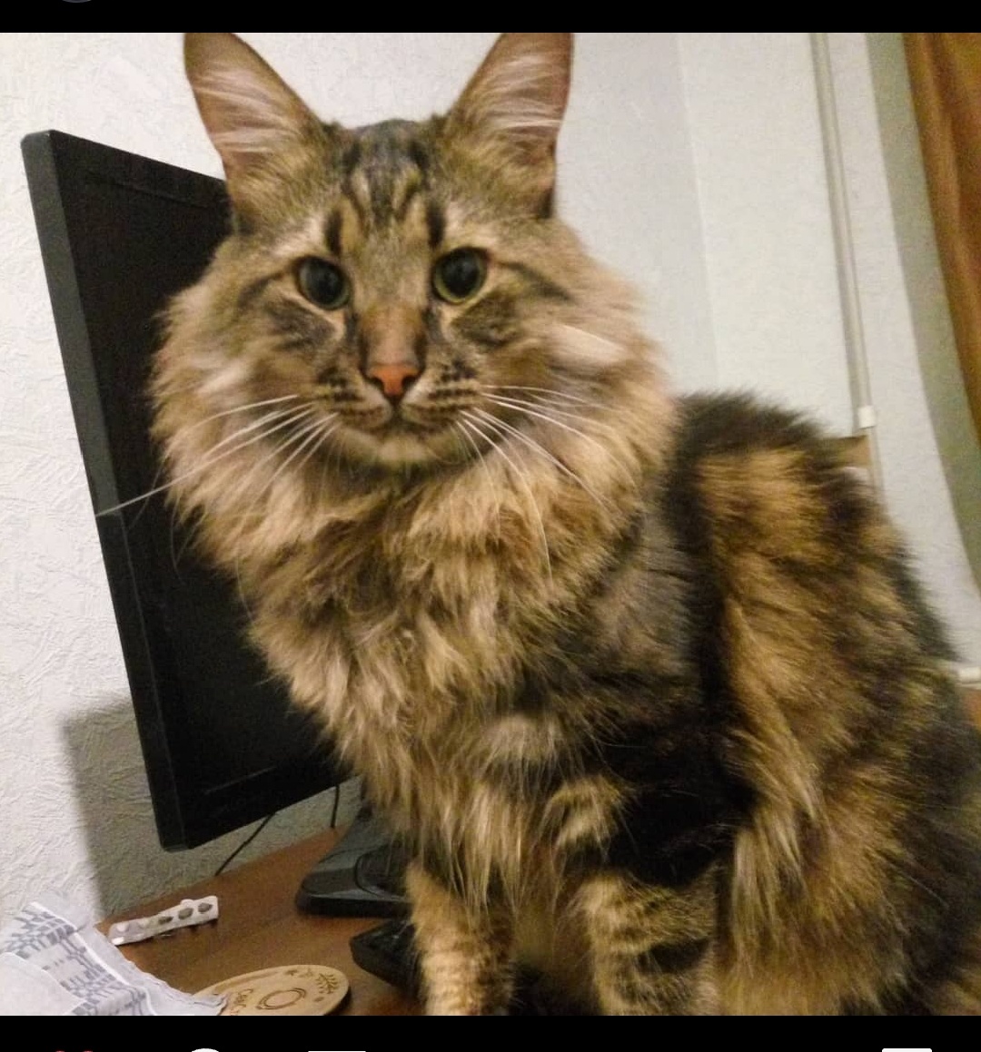 Всем привет! С вами Кузя Кусалочкин и сегодня я покажу свои старые фотки. Вчера, как всегда, получил утром паштетик и таблетку. После хорошего завтрака решил пойти поспать на диване. Но перед этим попил сливочки, выпросил у хозяйки. На диване я проспал очень долго, большую часть дня. Погода странная, сонная у нас. Меня очень вкусно кормили говядиной вчера. Хозяйка откопала кусочек в морозилке и даже не забывала вовремя наполнять миску. А ещё она научилась всё мяско мелко резать, чтобы мне не надо было долго жевать. Фотографий моих старых я покажу только две. К сожалению, они хранились у хозяйки в ноутбуке, который сломался и всё потерялось. А недавно хозяин в своём нельзяграме нашел мои старые фото. Это фото 2018 года, здесь мне недавно исполнилось 3 года. Вроде и большой, а на котёнка похож, взгляд не серьезный. Тут ещё всё стояло в комнате по-другому. А это фото сделано в июне 2019 года: Мне тут 4 года с маленьким хвостиком. Выгляжу я здесь намного солиднее и серьёзнее. И да, это