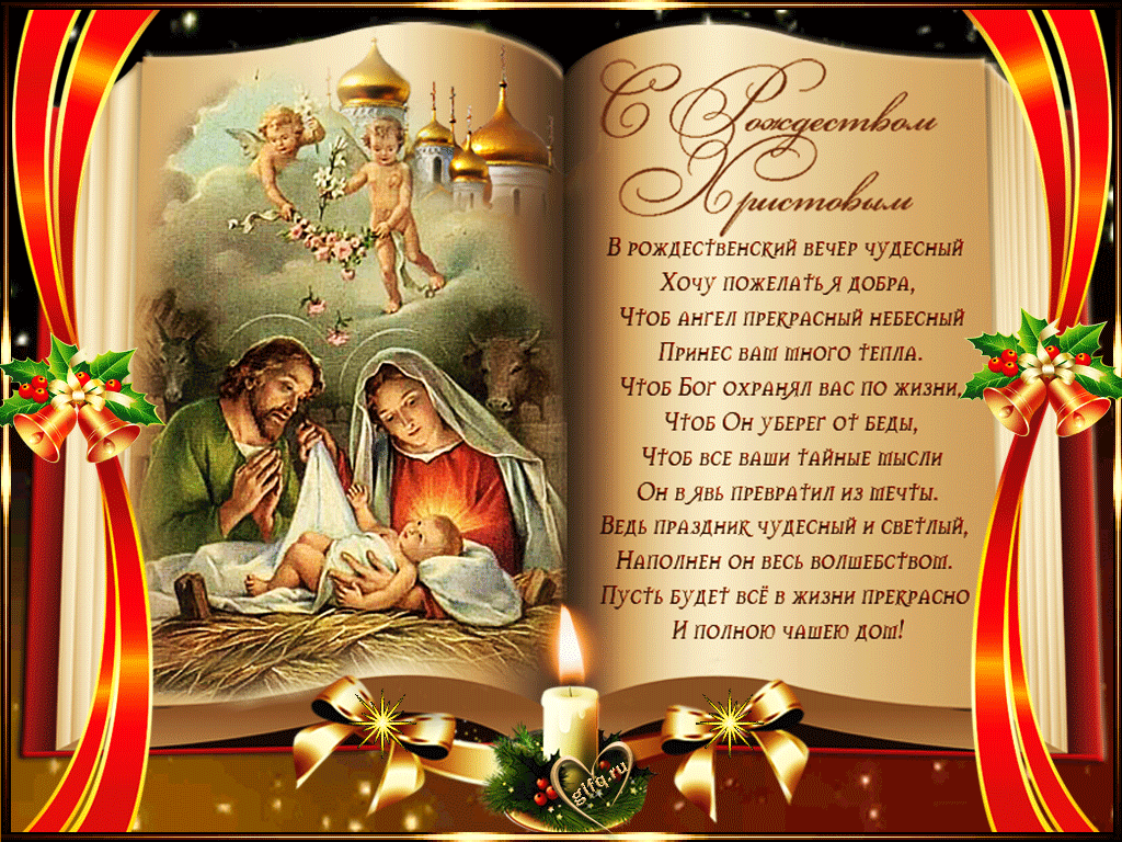 Дорогие Друзья! Поздравляю с Рождеством Христовым и сердечно, от всей души желаю мира и добра, любви, благополучия, крепкого здоровья,успеха. Пусть ваш дом наполнится смехом и весельем. Пусть ангел-хранитель оберегает ваши семьи от всех бед. Пусть в душе каждого воцарятся вера, покой и благодать. Желаю всем только добра, благочестивых мыслей и дел. Желаю заветной дороги, правильных решений и чудесных сюрпризов от судьбы.