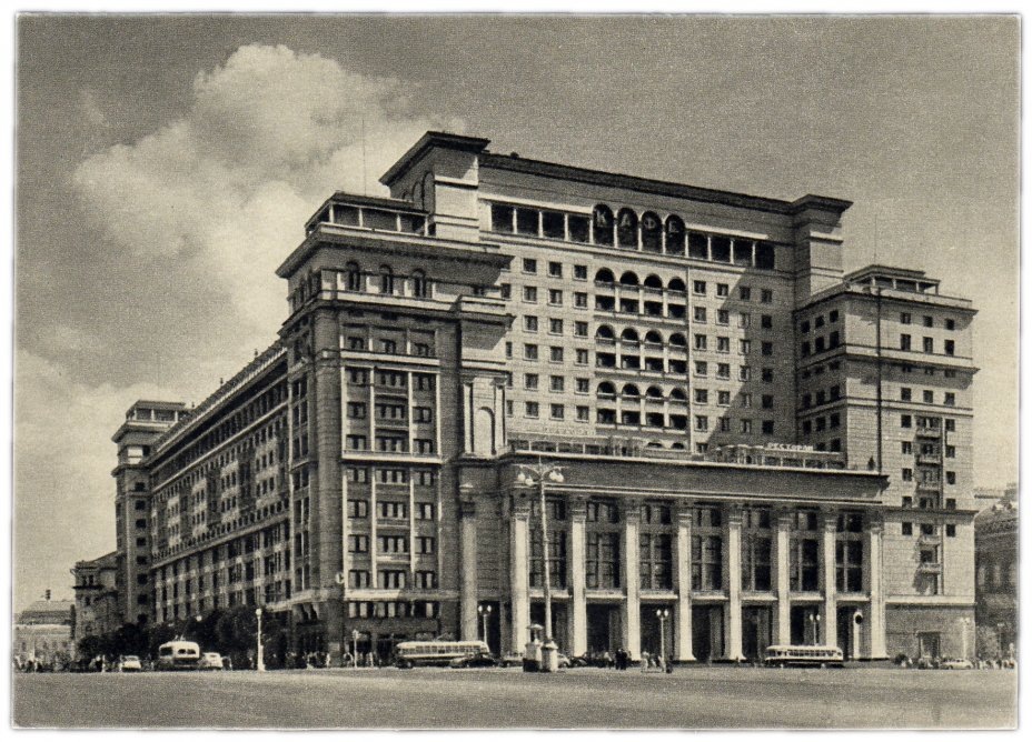 Гостиница «Москва»: история двух лиц одного здания Гостиница «Москва» — одно из самых узнаваемых зданий столицы, находящееся у самых стен Кремля. Её уникальная архитектурная особенность — два совершенно разных фасада, выполненных в разных стилях. Эта деталь вызывает удивление у тех, кто видит гостиницу впервые, и интерес у тех, кто знаком с историей её строительства. Как получилось, что одно здание обрело два лица? Разберёмся. Задумка и исторический контекст В начале 1930-х годов Москва активно преобразовывалась, стремясь стать символом мощи и прогресса Советского Союза. На месте старых строений у Манежной площади должно было появиться новое грандиозное здание — гостиница, которая стала бы визитной карточкой столицы. Это должно было быть не просто место для размещения гостей, но и настоящий памятник советской архитектуре. Проект поручили архитекторам Алексею Щусеву, Андрею Мордвинову и Владимиру Гельфрейху. Однако перед ними стояла сложная задача: здание находилось на стыке историчес