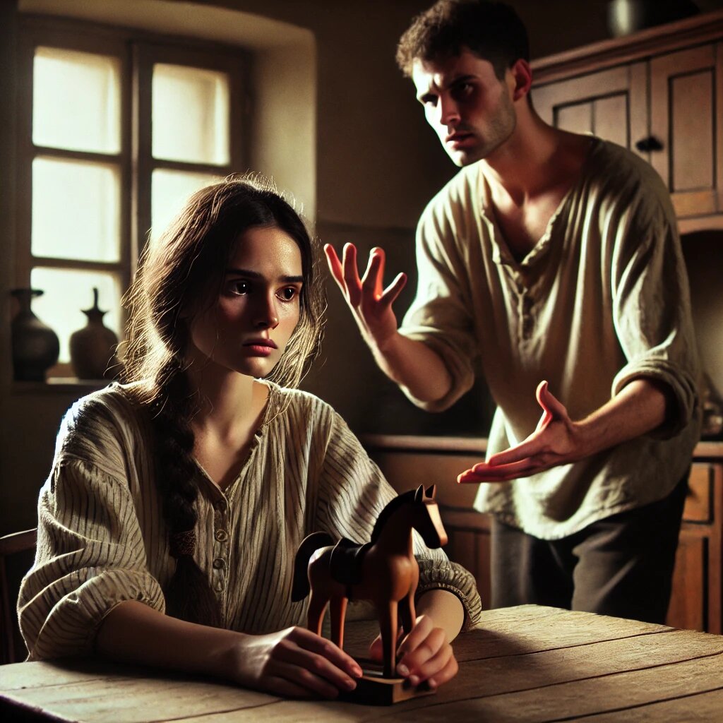 Когда Анна вошла, он поднял глаза от своих бумаг. Его взгляд упал на лошадку в её руках, и он мгновенно понял, что перед ним не просто вещь.