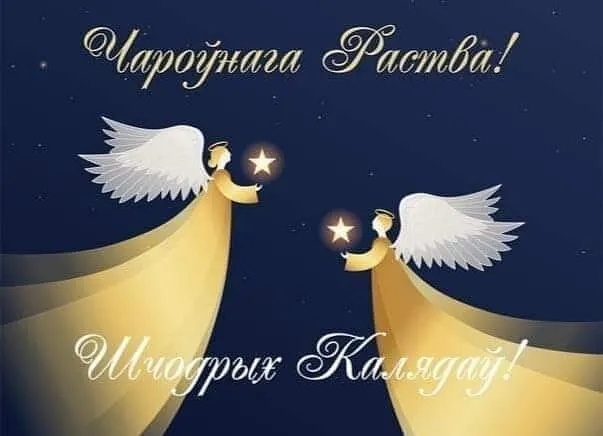 Мы всегда ждём этот день с особым чувством. Конечно, не случайно. Потому что в этот благословенный день в мир пришёл Спаситель. Будем всегда помнить о том, что Бог не пожалел Сына Единородного ради нашего спасения. Будем благодарны за это. Всем надежды, любви, мира в душе, согласия с людьми и самими собой. Пусть свет рождественской звезды освещает ваш путь и согревает своим далёким и таким близким светом! Надпись на открытке сделана по-белорусски.