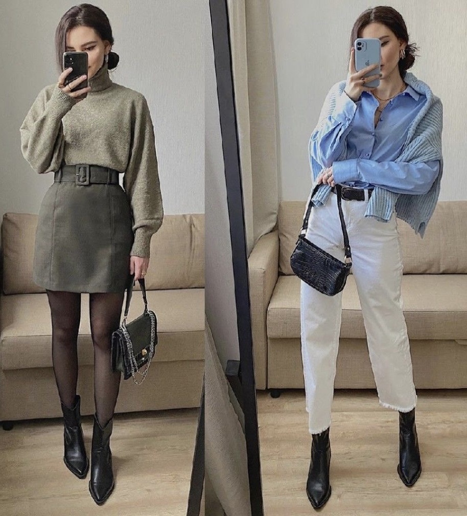 - Акцент на талии. Ремень — это твой лучший друг. Высокая посадка брюк или юбки плюс ремень — и ты превращаешься в стройную красавицу.