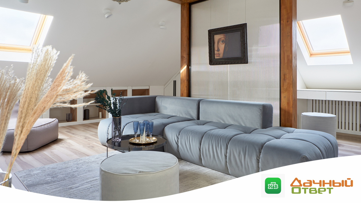 Типичная мансарда превратилась в эффектное и функциональное пространство, в котором появилась и спальня, и гостиная с кинотеатром. Центром гостиной стал, конечно же, большой модульный диван. Мы изготовили его по индивидуальному проекту, благодаря которому он обрел несколько новые формы :) ✅ Модули легкие, диван можно быстро трансформировать и перемещать;