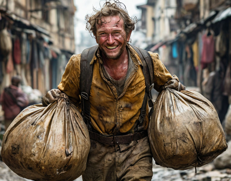 А после мешков он готов на ВСЁ! Даже жизнь отдать. Ну прям супер герой!