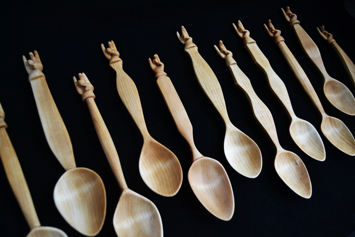 Чтож, всех с наступившим Новым годом и Рождеством. Ну и так сложилось, что в Рождество я решил показать ложки "в тему") Тут в одном из предыдущих постов кто-то задавался вопросом -кто эти люди, которые заказывают такие ложки?". В общем-то, вопрос действительно резонный. Уж что-что, а ложку найти сейчас не проблема. Да и металлические ложки, чего уж кривляться, гораздо практичнее и долговечнее деревянных. А если уж так хочется деревянную - в любом маркетплейсе они копейки стоят. Недавно случайно наткнулся на сюжет по телевизору про производство деревянных ложек в Семёнове - они делают по 150 тысяч штук в месяц. Естественно, механизированное производство позволяет делать большие объёмы и сильно удешевляет стоимость конечного изделия. Но есть нюанс. Такие предприятия не будут браться за индивидуальные заказы 10-20-50 и даже 200 штук. Это не имеет смысла. И тогда люди обращаются к тем, кто делает это вручную. И заказы бывают очень разные) Не так давно ко мне обратились с вопросом - смогу л