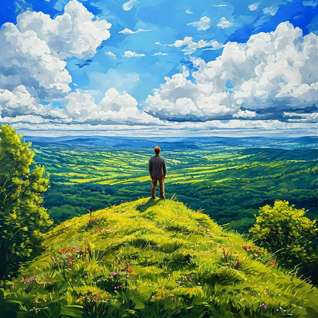 Я стою на вершине холма и смотрю на раскинувшийся передо мной пейзаж. Вдалеке виднеются горы. Внизу течет река, извиваясь между холмами и создавая красивые водопады. Я ощущаю лёгкость и гармонию. Здесь нет суеты и шума города. Только тишина и спокойствие. Я дышу глубоко и равномерно, наслаждаясь каждым моментом. Я чувствую, как моё тело расслабляется, а мысли становятся ясными и чистыми. Я освобождаюсь от всех забот и проблем, оставляя их позади. Я знаю, что это место — мой внутренний мир, где я могу отдохнуть и восстановить силы. Здесь я нахожу вдохновение и радость. Здесь я могу быть собой. Я готов вернуться к реальности, но знаю, что всегда смогу вернуться сюда, когда мне это будет нужно.