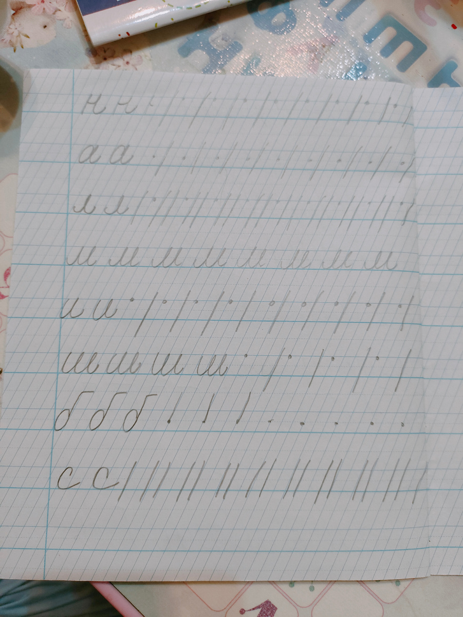 Около 2 месяцев назад писала статью о том, как мы перешли к прописям и зачем Мы продолжаем, теперь пишем по страничке без напряга и особого принуждения 1-2 раза в неделю. Поняла, что у моего ребенка с письмом глобальных проблем нет (чудес тоже нет, но и нет напряга). У старшего как раз были (я не понимала, думала, что ленится). Вот ему было тяжело писать, всю начальную школу мы все страдали. Он на слух всё запоминает прекрасно, а пишет только то, что требуется. Я это пишу к тому, что дети все разные, и мы с дочкой идем по пути письма, потому что ей это легко. А говорить и запоминать на слух тяжело. И ей страничку прописи написать - 5 минут, и не устала. Сейчас выучили 9 маленьких букв - вроде б немного, но спокойно и наверняка. Доводим до идеала. В прописях приходится много рисовать дополнительных точек и линий, чтобы ребенок написал красиво. В другой раз, если вижу, что буква крива, пишу просто строчку этой буквы для обводки. Мы всегда спешили со всем материалом, а тут я вижу, что мо