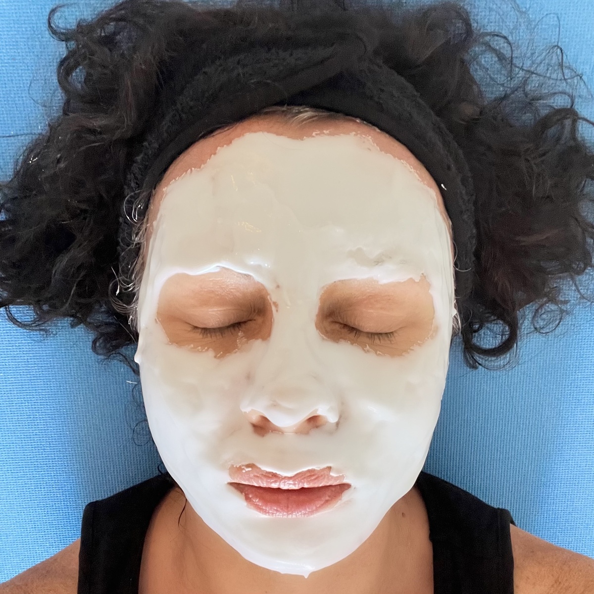 Омолаживает, подтягивает, снимает раздражение, убирает морщинки, удаляет жирный блеск. Это всё альгинатная маска! Для того, чтобы альгинатная маска делалал нам красивыми и молодыми, нужно правильно ее наносить. Тут есть секреты. Сейчас всё расскажу. Про замечательные свойства альгинатной маски и почему ее надо брать и мазать, брать и мазать — вот тут. Маска продается обычно в виде пудры сероватого, голубоватого или зеленоватого цвета. Зависит от добавок. Разводим так (если на упаковке не указано иначе): 1 часть порошка на 1,5 части воды. 1. Вода должна быть холодной! Чем холоднее, тем лучше. От теплой воды маска застывает очень быстро. Вы просто можете не успеть нормально нанести на всё лицо. 2. Перед тем, как нанести маску, смажьте лицо тонером, тоником или нанесите специальный гель под альгинатную маску. У меня такой, как на фото. Отличная штука! Маска ложится ровнее, плотнее и хорошо снимается. 3. Покрывать можно всё лицо и шею, и глаза, и губы. Можно не наносить на глаза и губы, е