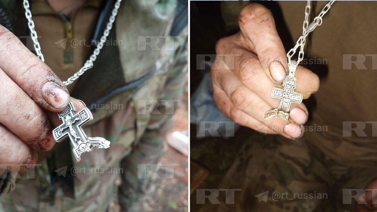 В зоне специальной операции православный крест уберег российского военного от тяжелого ранения. Как сообщает Telegram-канал RT, осколок пробил висевший на шее крестик и поверхностно задел бойца. Рассказавший эту историю сослуживец раненого военного назвал произошедшее «чудом» и признался, что его товарищ после случившегося заплакал. Это не первая история чудесного спасения в зоне специальной операции. Ранее военный священник группировки войск «Днепр» Сергий Мищенко рассказывал, что попавший под обстрел военнослужащий отделался царапиной на каске, в которую вложил маленькую икону, а другой участник боевых действий через несколько дней после обряда крещения сумел выбраться из горящего танка. Также клирик Казанского собора на Красной площади Геннадий Бочаров рассказывал, как обретенная Московская Казанская икона Божией Матери спасла жизнь бойцу на фронте. По словам священника, к нему пришла женщина и сообщила, что горячо молилась перед образом, после чего ее сыну-военному было явление Цар