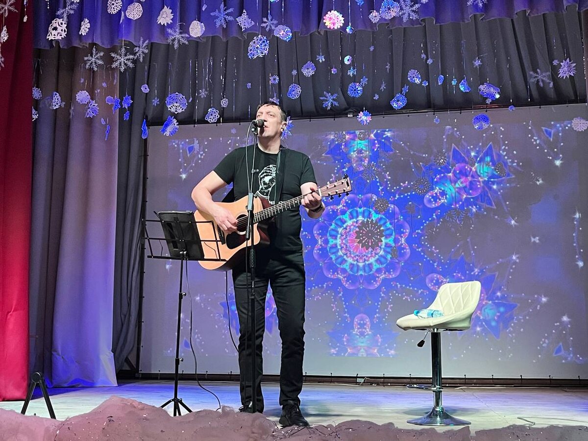 Вячеслав в фойе нашего Дома культуры зашёл с гитарой за спиной и широкой улыбкой. Такой знакомый и близкий, как будто все мы знаем друг друга уже много лет. С первых же минут отправился настраивать инструмент, провёл небольшую репетицию. На самом деле время нашего гостя было расписано поминутно, успевали обсудить в основном рабочие моменты.