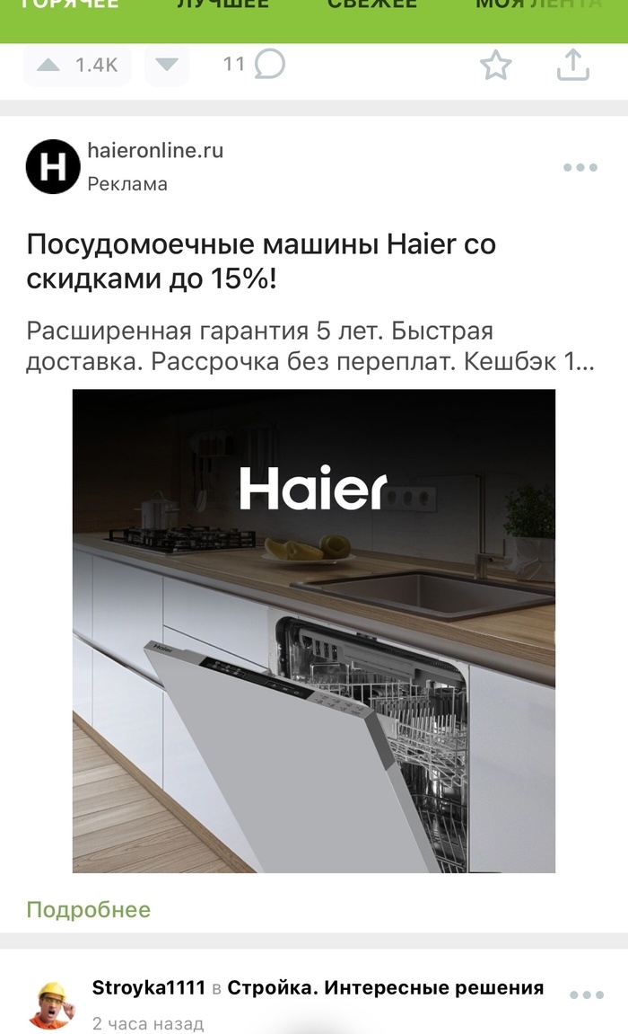На днях я решил купить посудомойку и, как следствие, начал искать в интернете информацию о различных моделях, ценах, читать отзывы на разные модели и т.д. А так как приложения на смартфоне общаются между собой, у меня теперь повсюду мелькает реклама посудомоек и прочей кухонной техники. Недавно наткнулся на одну из таких рекламных картинок и просто не могу удержаться от вопроса: «Кто же придумывает подобные изображения для рекламы? Искусственный интеллект их генерирует? Как, интересно, такая посудомойка могла поместиться под раковину? Неужели никто перед запуском рекламной кампании не проверяет, что собираются опубликовать?