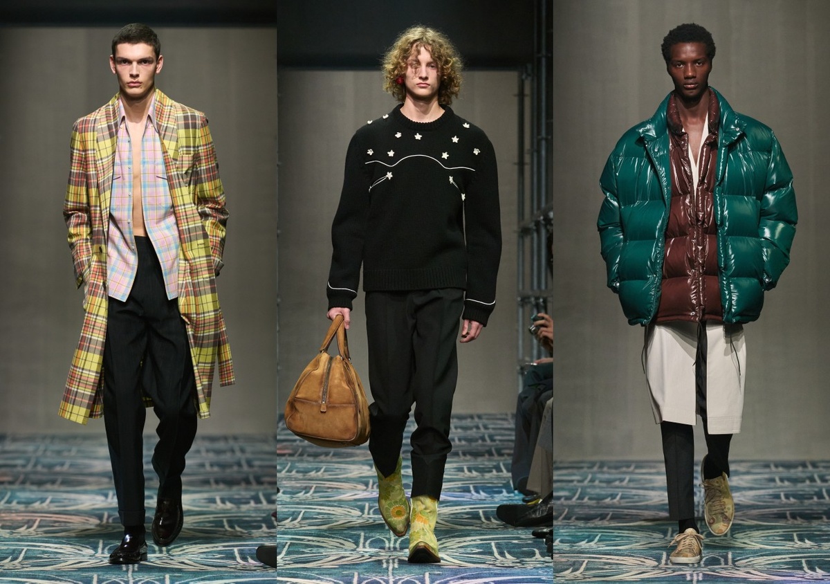 Рафт Симонс и Миучча Прада вновь исследуют человеческую природу, превращая моду в зеркало наших инстинктов. На Неделе мужской моды в Милане они представили коллекцию, где утонченность встречается с грубостью. Ключевые акценты коллекции Оформление шоу в индустриальном стиле подчёркивало контраст между грубой реальностью и стремлением к близости и красоте. Первые ряды шоу заняли Трой Сиван, Луи Патридж и Себастьян Стэн, вдохновляясь новыми образами для осенне-зимнего сезона.
