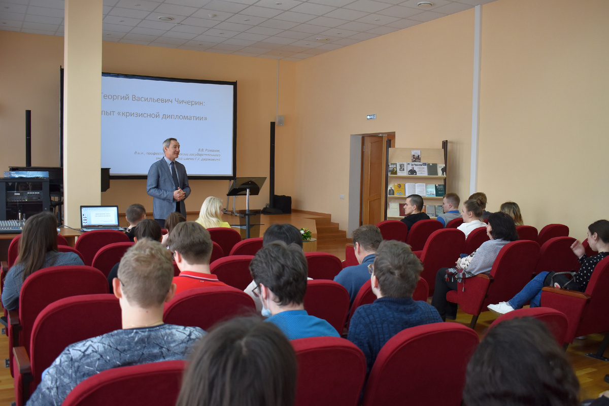 Лекцию прочел Романов Владимир Викторович, доктор исторических наук, профессор, научный руководитель факультета истории, мировой политики и социологии Тамбовского государственного университета имени Г. Р. Державина.