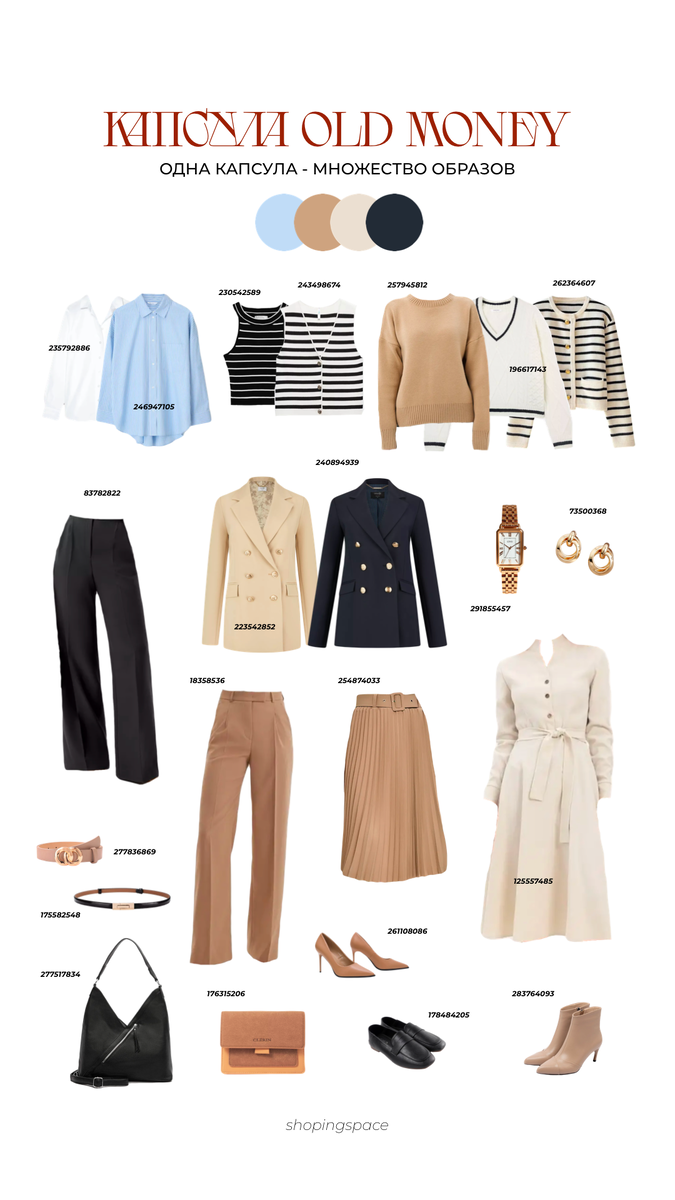Не гардероб - а МЕЧТА! Один раз купить универсальные вещи, чтобы носить целую вечность. Не знаю как вам, но для меня это идеальный вариант. Кроме того, такая капсула в стиле old money всегда будет смотреться женственно и стильно. А за счёт базовых цветов и моделей вещи можно комбинировать и создавать множество интересных образов. Итак, я собрала из капсулы 6 готовых образов, но все вещи в ней универсальны и образов можно собрать гораздо больше. ОБРАЗ 1 ОБРАЗ 2 ОБРАЗ 3 ОБРАЗ 4 ОБРАЗ 5 ОБРАЗ 6 Для удобства артикулы оставила на фото по каждой вещи, подбирала на ВБ. Сохраняйте. Вы можете использовать вещи из своего гардероба или поискать похожие вещи в других магазинах, не обязательно из подборки. Какой образ забираете себе? Группа ВКонтакте Телеграм канал Присоединяйтесь ✨