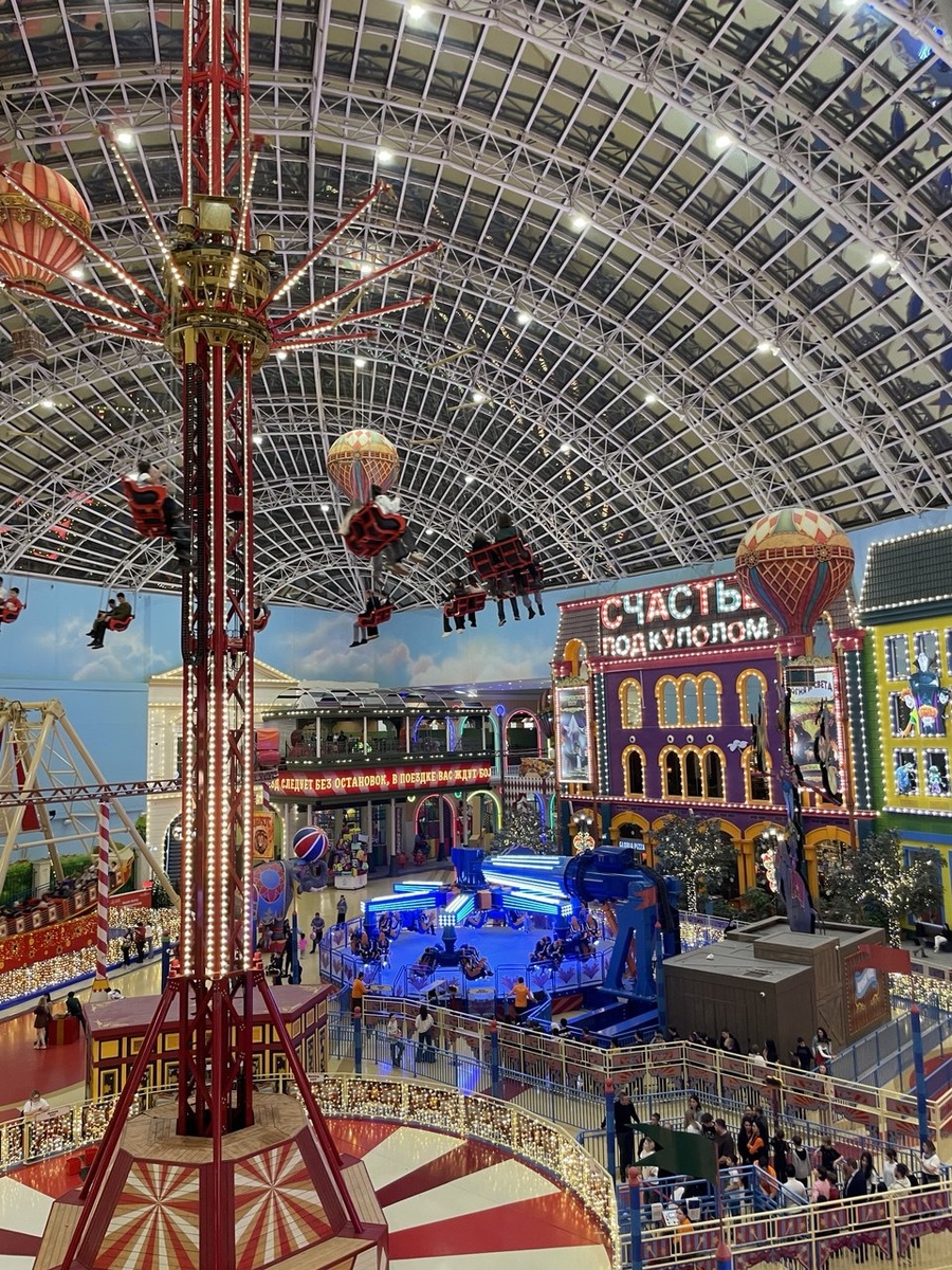 «Остров мечты» принимает гостей уже пять лет, а я все эти годы избегала посещения парка и даже не думала, что однажды окажусь там. Муж уже возил детей в «Остров мечты», а я всегда отказывалась, так как не катаюсь на аттракционах, да и в целом не тянуло туда. В этом году он попросил меня помочь с сопровождением детей. Они подросли, вкусы разные, и нужно двое взрослых для организации такого досуга. Коротко: ожидания были хуже и мне в итоге понравилось. Подробно: я была наслышана о том, что парк посещает просто неимоверное число людей, что время ожидания в очереди на некоторые аттракционы достигает чуть ли не полутора часов. Ничего подобного я не увидела. Возможно у парка есть сезонность, но приехав в будний январский день вечером, мы почти везде проходили без очереди. Аттракционов действительно много, на любой вкус, возраст, уровень страха. Моей храбрости хватило прокатиться на воздушном экспрессе, курсирующем под потолком парка, и на нескольких безобидных каруселях. Дети были похрабрее