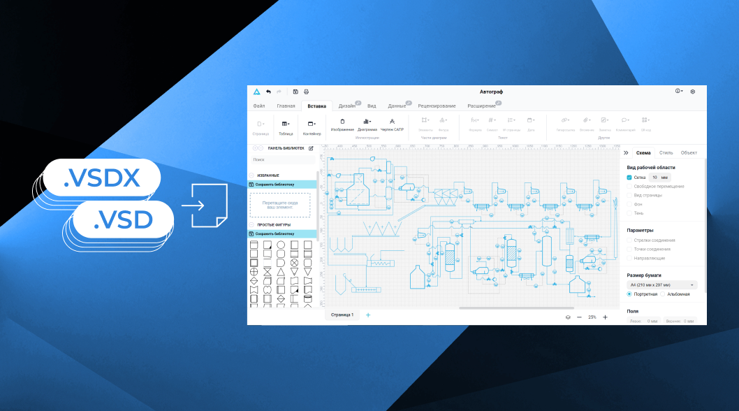 В этой статье: Файлы с диаграммами и чертежами, созданные в ПО Microsoft Visio, могут быть представлены в одном из трёх популярных расширений. Речь о VSDX (основной формат Visio, начиная с версии 2013), VSD (использовался в более ранних версиях приложения) и VSDM, формате с поддержкой макросов. Наиболее часто встречается VSDX: благодаря XML-структуре этот формат достаточно гибкий и удобный для работы с современной графикой. С учётом того, что решение Microsoft Visio больше недоступно в России, ряду пользователей, особенно из корпоративного сектора, важно иметь доступ к альтернативному ПО. Ниже посмотрим, какие сегодня есть варианты для работы с файлами VSDX и на какие аспекты обращать внимание при выборе приложения. В качестве аналога Visio доступно как бесплатное, так и платное ПО для работы с VSDX-файлами. Ключевой недостаток бесплатных решений: далеко не все компании могут официально им пользоваться, поскольку часто такие программы не соответствуют требованиям информационной безопас