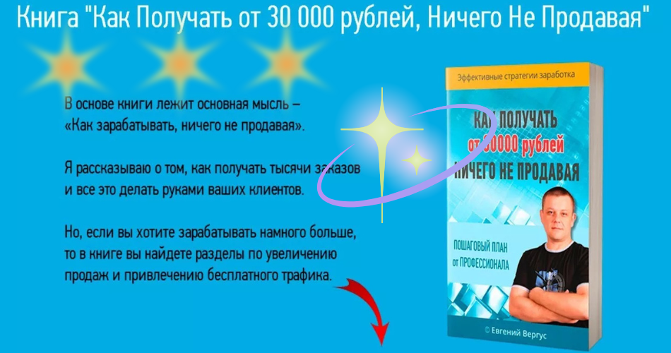 Приветствую тебя, искатель финансовой свободы! Ты устал от бесконечных попыток продать что-то ради заработка? Представляю твоему вниманию уникальную возможность — PDF-книга Евгения Вергуса "Как получать от 30000 рублей, ничего не продавая". В этом руководстве собраны самые эффективные стратегии и практические советы, которые помогут тебе создать стабильный источник дохода без необходимости продавать товары или услуги. Готов узнать секреты пассивного заработка? Погружайся в мир новых возможностей вместе с нами! PDF-книга "Как получать от 30000 рублей, ничего не продавая" Евгения Вергуса — это подробное руководство, которое откроет перед вами двери в мир пассивного дохода. Внутри вы найдёте не просто теоретические рассуждения, а реальные и проверенные стратегии, которые помогут вам начать зарабатывать в интернете, даже если вы ещё никогда этим не занимались. Евгений поделится с вами своими секретами и практическими методами, которые он сам успешно применял на протяжении многих лет. Он