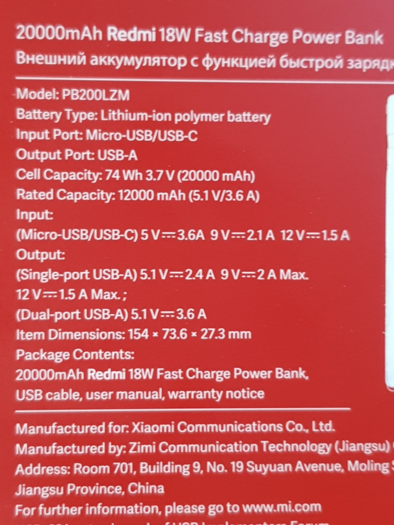 Пикабушник Supersted купил портативный зарядник Xiaomi и увидел информацию, которая вызвала у него недоумение. Заявленная ёмкость аккумулятора была 20000 мА·ч, а измеренная (rated) гораздо ниже — 12000 мА·ч. Само собой, возникли вопросы, почему так и сколько энергии в этом пауэрбанке на самом деле. Фото: Пикабу / Supersted