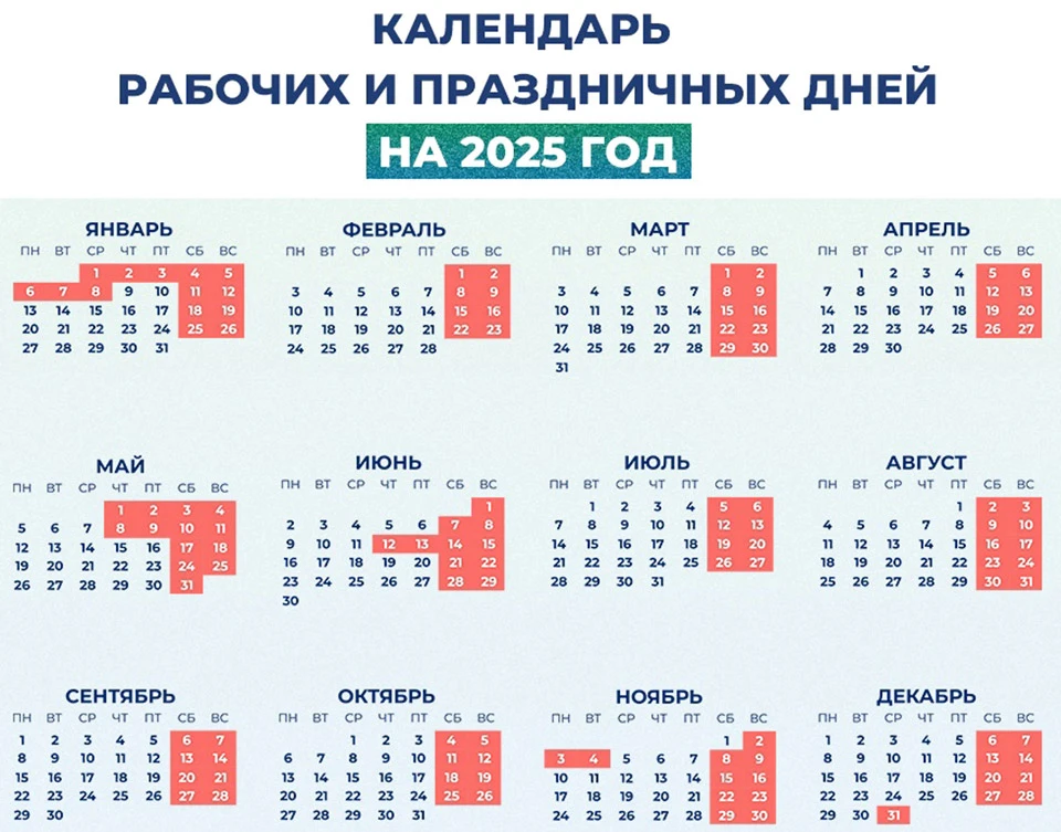 Минтруд России опубликовал производственный календарь на 2025 год, определив праздничные и нерабочие дни. Планирование рекламных кампаний и продвижения можно начинать уже сейчас, учитывая продолжительные периоды отдыха в течение года. Основные моменты календаря на 2025 год: Таким образом, 2025 год будет богат на длинные выходные, что позволит россиянам эффективно планировать отпуска и праздничные мероприятия.