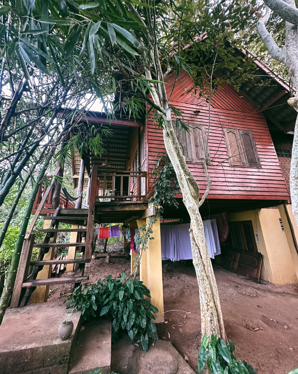 Гостевой дом паламеи скрасил наш первый день прибывания в Лаосе. Мы уже не ожидали увидеть что-то приличное, но когда двери нам открыла улыбчивая француженка, хозяйка геста, мы поняли, что приехали в отличное место! Такой домик стоит всего 800 рублей ночь на двоих. На террасе можно поваляться в гамаке с шикарными видами на рисовые поля. В отеле готовят отличные завтраки, а если собирается много гостей, то вечером организовывается большой ужин для всех постояльцев, его готовит сама француженка. Очень атмосферное и приятное место. Как вам такой деревенский домик среди рисовых полей? Первое, что бросилось в глаза, когда мы проснулись утром и увидели солнышко на небе - насыщенность красок. Как будто в Лаосе текстуры выкрутили на максимум, после Вьетнам здесь все казалось наполненным жизнью, настолько ярким, что иногда чудилось, будто это какая-то ненастоящая картинка. Нас это очень сильно удивило, потому что мы даже и не замечали на сколько во Вьетнаме было мрачно. Подобные чувства мы уже