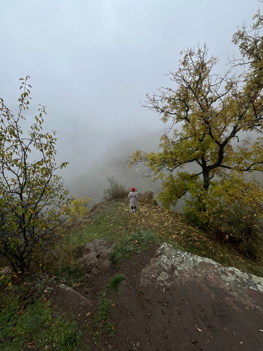 Близлежайшие локации из Теберды я осветила в своих предыдущих статьях. Сегодня расскажу об одной из тех, до которых за короткое время можно доехать на машине. Сентинский храм - христианский храм, возведен в 965 году. Это самый большой фресковый комплекс на территории Алании. Этой информации было достаточно, чтобы мне захотелось его посетить. Вы только вдумайтесь - 965 год! От Теберды ехать до него около 30 км по трассе. В какой-то момент дорога кончается и дальше едем по грунтовке вверх. Дождь идет уже не первый день, дорога скользкая, но моя Калина справилась. Делаю вывод, что доехать своим ходом может любой. Оставляем автомобиль на паркове и проходим около 100 метро по дорожке к самому храму. По пути наблюдаем такие атмосферные виды Погода сыграла нам на руку - мы как будто оказались на съемках мистического фильма. Храм закрыт, но с правой стороны есть лазеечка, в которую мы конечно же пробрались и вот, что увидели Атмосферы прибавляло то, что вокруг храма ходил мужчина и читал молит