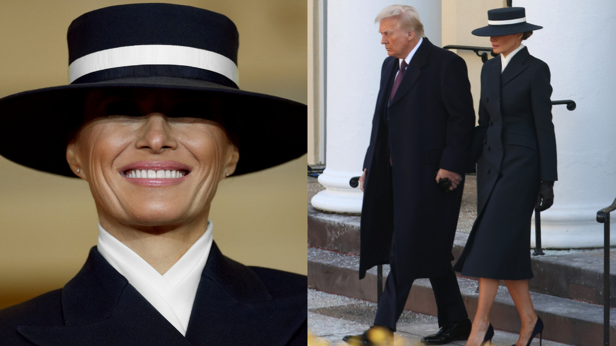 Первая леди США Мелания Трамп сегодня утром надела пальто и юбку из шелковой шерсти от Adam Lippes с блузкой цвета слоновой кости на инаугурацию 2025 года, которые она дополнила соответствующей шляпой от Эрика Джевитса.